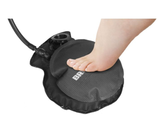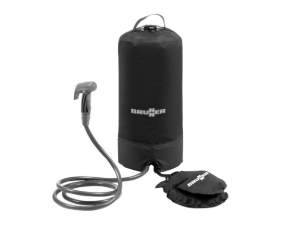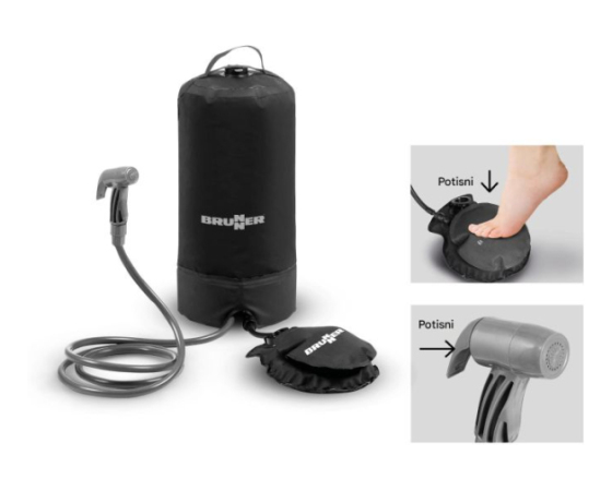Neodvisna zunanja prha, ki temelji na tlačnem sistemu. Priložena sta nožna črpalka in torba za prenašanje.