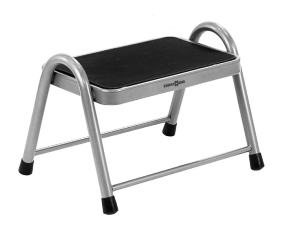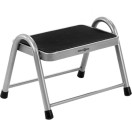 Stopnica s stabilnim jeklenim okvirjem in nedrsečo gumijasto površino.