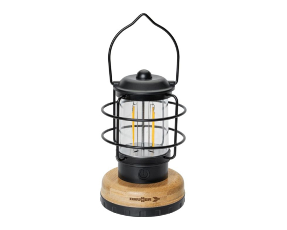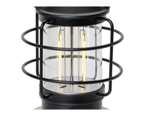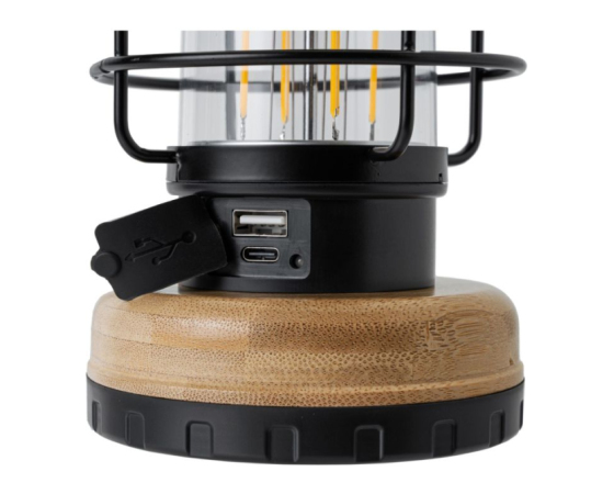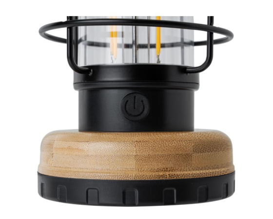 Svetilka Lamparina združuje vzdržljivost in eleganco, s trdnim lakiranim kovinskim okvirjem, bambusovim podstavkom in prosojnim plastičnim senčnikom. Je vsestranska rešitev za kampiranje, druženje na prostem ali v nujnih primerih.