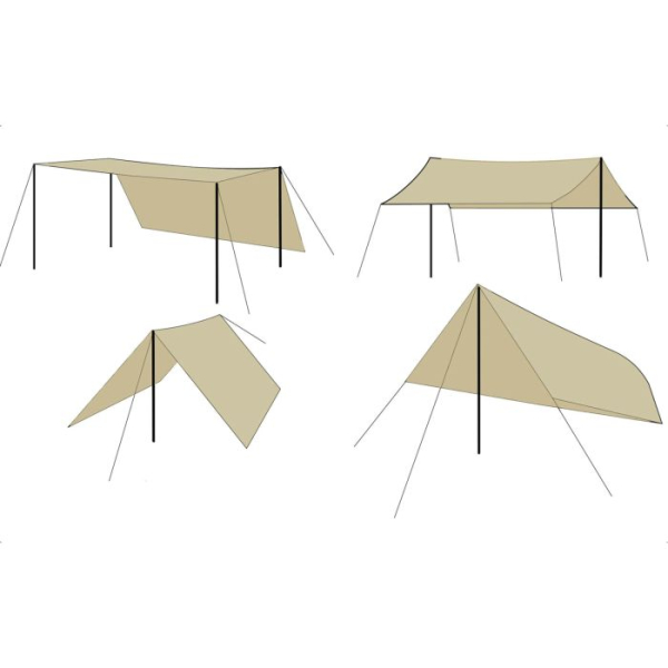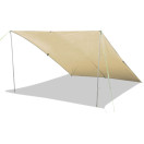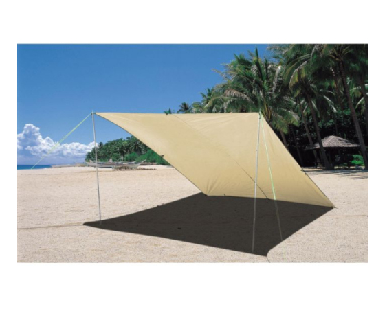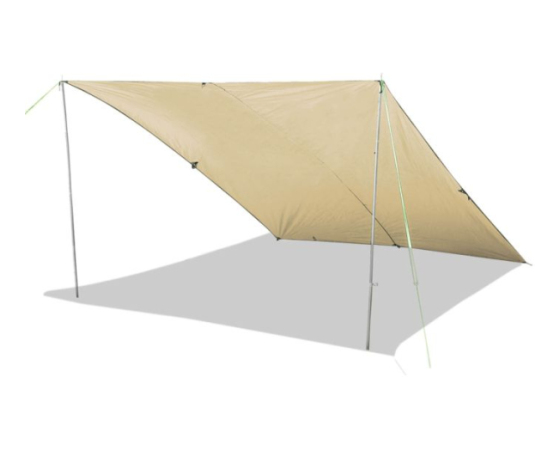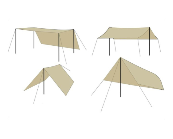 Univerzalna sončna ponjava z več točkami za pripenjanje in napenjanje. Ta ponjava je idealno zavetje pred soncem in dežjem v kampu, na vrtu ali na plaži.