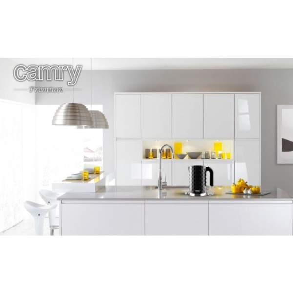 Električni kuhalnik Camry CR 1269 z največjo močjo 2200 W določa nove oblikovne trende med električnimi napravami. To je zelo ekskluzivna serija kuhalnikov, za katere se običajno odločajo ljudje, ki cenijo privlačen videz. Kuhalnik je veliko več kot le preprosta gospodinjska naprava - deluje tudi kot edinstven okras vaše kuhinje. Je odličen element sodobne notranjosti in tudi reprezentativnih prostorov, kot so pisarna, matični urad ali konferenčna soba. Zmogljivost 1,7 l vam omogoča, da hkrati zavrete vodo za več oseb.