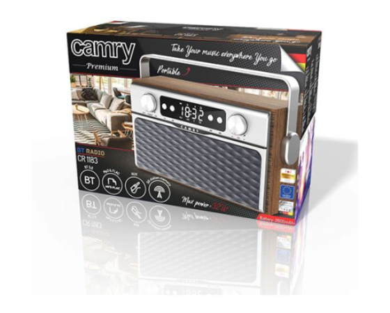 Radio Camry CR 1183 uporablja Bluetooth 5.0, zahvaljujoč kateremu lahko poslušamo glasbo s povezovanjem drugih naprav z radiem: računalnika, pametnega telefona ali tablice. To je zanimiva rešitev, če želite poslušati svoje najljubše izvajalce. USB prav tako omogoča poslušanje MP3 datotek, zahvaljujoč SD kartici pa lahko preprosto poslušate celotne albume vaših najljubših izvajalcev. Radio ima spomin, ki omogoča shranjevanje 50 postaj. Baterija s kapaciteto 2600 mAh omogoča uporabo sprejemnika več ur, zvočnika z močjo 2 x 8 W pa omogočata uživanje v jasnem in ostrih zvoku.
