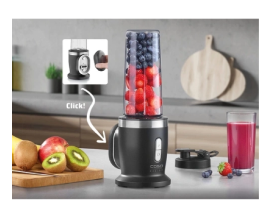 CASO Click & Blend ni le zmogljiv, temveč tudi izjemno praktičen. 500-mililitrska mešalna in pitna steklenica iz BPA-free Tritana™ z to-go pokrovom je popolna za vsakdan – v pisarni, telovadnici ali na poti. Zaradi kompaktne velikosti se mešalnik zlahka shrani in je vedno pri roki.