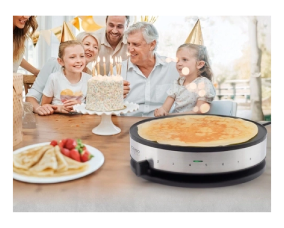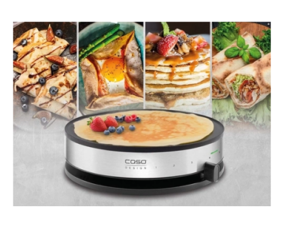 Kdo ne pozna tistih čarobnih trenutkov, ko se po božičnem sejmu ali veselici razširi vonj sveže pečenih crêpes? Z CASO Design Crêpes Maker CM 1300 lahko ta občutek doživite kar doma. Brez čakanja v vrsti in brez mraza – le vi, vaše najljubše sestavine in zapeljiv vonj zlato rjavo pečenih XL crêpes, sveže pripravljenih v vaši kuhinji. Sladke s cimetom in sladkorjem ali slane s sirom in šunko – domišljija ne pozna meja.