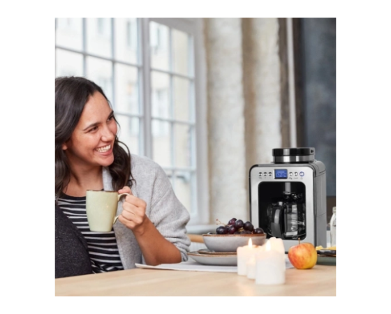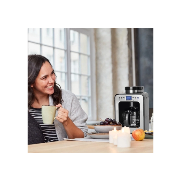 Vgrajeni časovnik vam omogoča popoln nadzor nad pripravo kave. Preprosto nastavite želeni čas in aparat začne s pripravo samodejno. Tako vas zjutraj pričaka aroma sveže pripravljene kave – brez čakanja. Pregleden LCD-prikaz zagotavlja posebej udobno upravljanje.