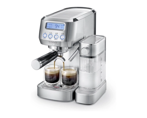 Z ročnim espresso aparatom EspressoGourmet Latte blagovne znamke CASO Design si lahko vrhunsko kavno izkušnjo pričarate kar doma. Ta visokokakovosten aparat iz nerjavečega jekla združuje eleganten dizajn z najsodobnejšo tehnologijo in omogoča pripravo polnega espressa, kremnega cappuccina, okusnega latte macchiata ter številnih drugih kavnih specialitet na osnovi espressa.