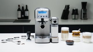 Odstranljiv, prozoren rezervoar za vodo s prostornino 1,3 litra in posoda za mleko s prostornino 700 ml zagotavljata dovolj zaloge za več skodelic brez pogostega dolivanja. V obsegu dobave so žlica iz nerjavečega jekla, težak kovinski tamper z lesenim ročajem, dva dvojnostenska in dva enostenska filtrska vložka iz nerjavečega jekla za 1 in 2 skodelici, ESE vložek za blazinice ter ročaj (portafilter) iz nerjavečega jekla.