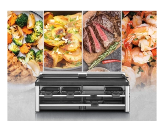 Raclette žar z 8 nelepljivimi ponvicami (brez PFAS) za do 8 oseb