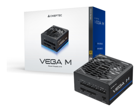 Napajalnik CHIEFTEC Vega serije M je izdelan v skladu z Intelovim standardom ATX 12V 3.1 in podpira PCIe GEN5 z učinkovitostjo, certificirano s strani 80PLUS Gold.
