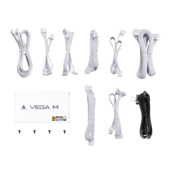 Napajalnik CHIEFTEC Vega serije M je izdelan v skladu z Intelovim standardom ATX 12V 3.1 in podpira PCIe GEN5 z učinkovitostjo, certificirano s strani 80PLUS Gold.