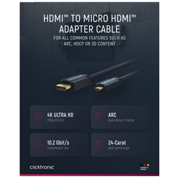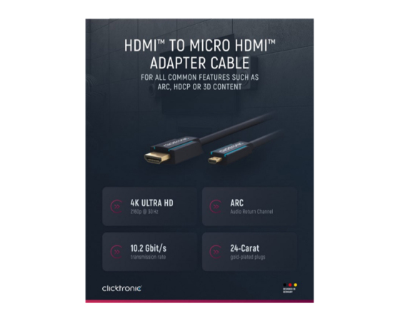 CLICKTRONIC HDMI na Micro HDMI HIGH SPEED z mrežno povezavo pozlačen 2 m kabel
