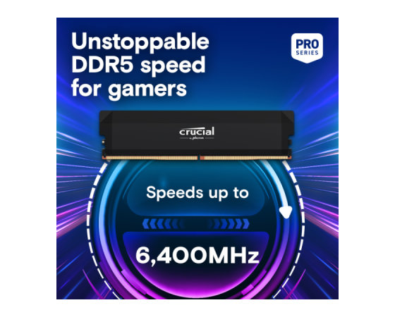 Crucial Pro DDR5 CP2K32G64C40U5B je 64 GB (2x 32 GB) pomnilniški komplet s hitrostjo 6400 MT/s in latenco CL40. Podpira Intel XMP 3.0 in AMD EXPO ter omogoča stabilno delovanje v zmogljivih sistemih.