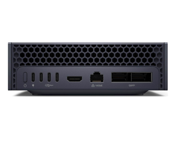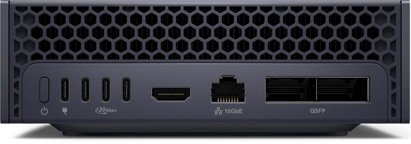 Priključki zadaj: 1 USB-C vhod za napajanje, 3x USB-C Gen 2x2 z DP Alt načinom 1x HDMI 2.1b, 1x RJ-45, 2x QSFP