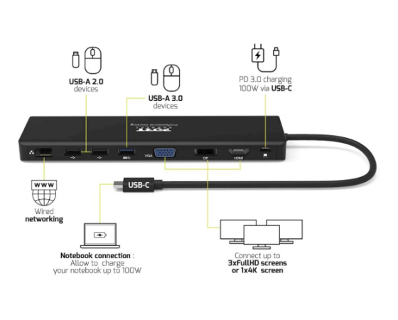 Docking Station PORT Type C, potovalni 100W