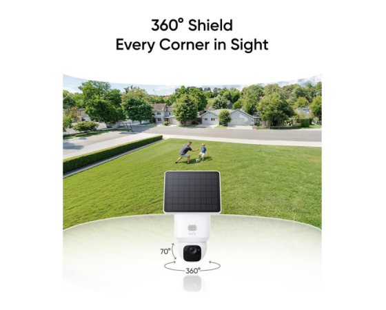 S 360-stopinjskim vrtenjem in 70-stopinjskim nagibom kamera zagotavlja popoln nadzor brez mrtvih točk. Spremljajte svoj vhod, dvorišče in celo dovozno pot.