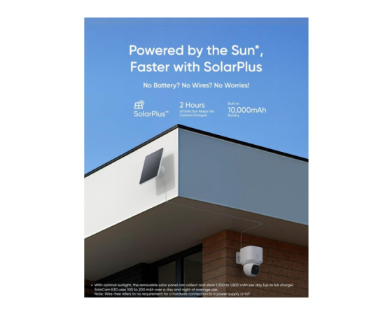 Odstranljiv sončni panel omogoča, da je kamera ves čas napolnjena. Zadostujeta že dve uri sonca na dan za neprekinjeno napajanje – brez kablov ali menjave baterij.