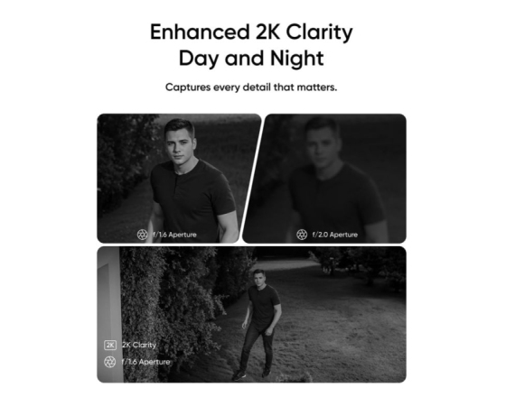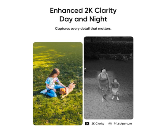 Zahvaljujoč zaslonki f/1.6 in 2K ločljivosti zajema kamera vse pomembne podrobnosti, tako podnevi kot ponoči.