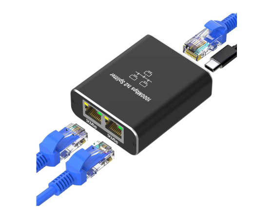 Priklopi in uporabljaj: namestitev ethernetnega razdelilnika je zelo enostavna. Preprosto ga priključite na vhodna omrežna vrata in na drugi strani povežite dve napravi. Priloženi napajalni kabel tipa C ne zagotavlja le zanesljivega napajanja, temveč omogoča tudi hitro in enostavno namestitev (napaja se prek vrat USB-C, kabel USB-A na USB-C je priložen, USB polnilec ni vključen.