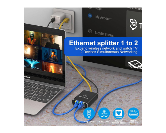 LAN Gigabit Ethernet razdelilnik 1 na 2: Če imate samo en LAN vhod, vendar želite hkrati priključiti dve različni napravi, potem je ta naprava popolna - Ethernet razdelilnik 1 na 2 obljublja uč inkovito in praktično rešitev za razširitev omrežnih povezav z razdelitvijo enega Ethernet vhoda na dva ločena vhoda.
