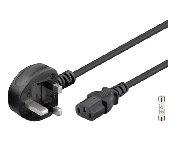 Napajalni kabel UK 3-polni moški (Tip G, BS 1363) > naprava z vtičnico C13 (IEC povezava)