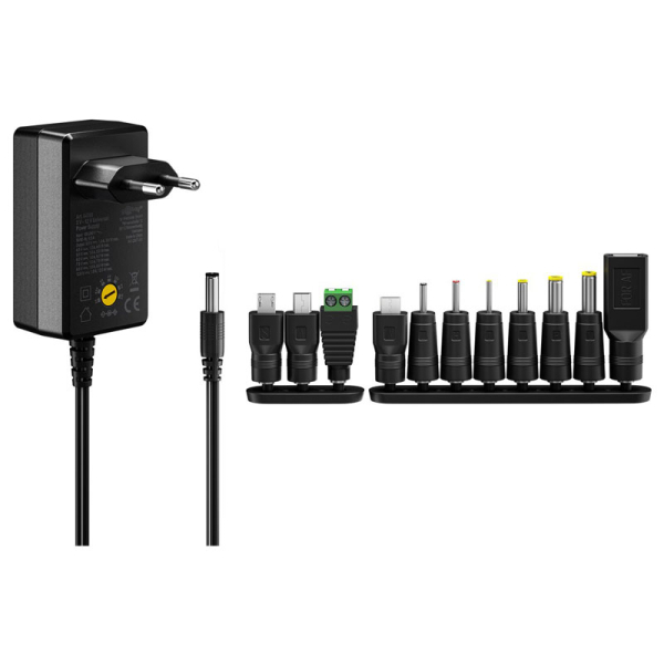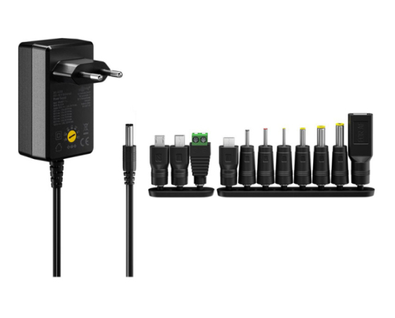 Napajalnik s spremenljivo napetostjo, popoln kot nadomestna enota za elektronske naprave, kot so TV sprejemnik, usmerjevalnik, LED trakovi, videokamera, digitalni okvir za slike, pikado, varuška ali igrača