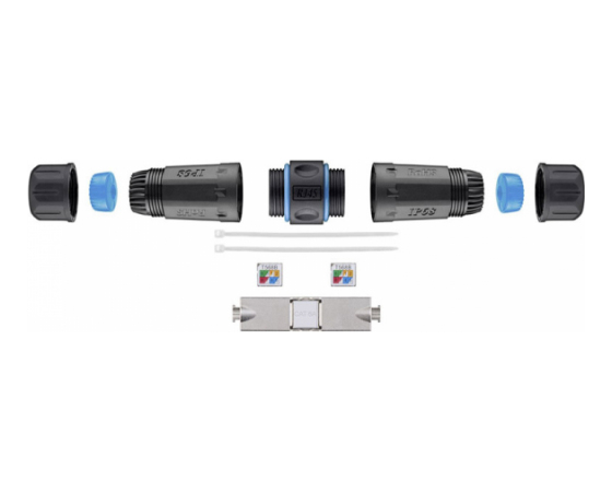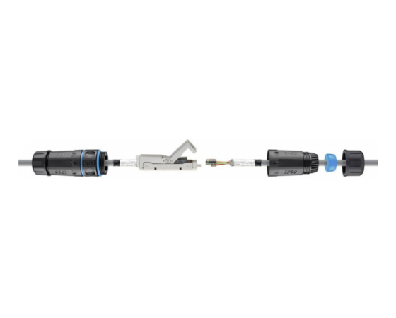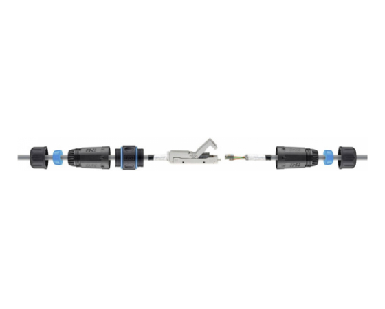 • zunanji (IP68) priključek za LAN kabel, CAT 6A oklopljen odporen na prah in vodo, za priključke IDC (brez orodja)