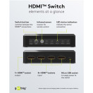 S preklopnikom HDMI lahko priročno preklapljate med do 4 napravami HDMI, ki so priključene na samo 1 zaslon HDMI s pritiskom na gumb ali z daljinskim upravljalnikom. Izognete se težavam s ponovnim povezovanjem kablov, hkrati pa zaščitite povezave. Stikalo, ki na zaslon poveže samo en kabel, zmanjša nered po kablih in ustvari čist videz.