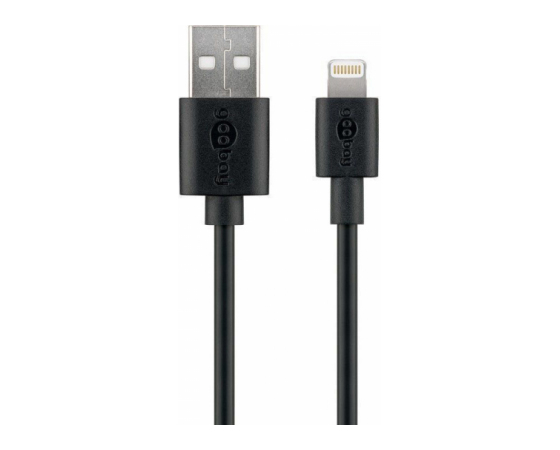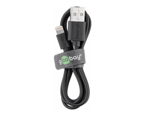 MFi kabel Goobay 1m za polnjenje in sinhronizacijo Apple iPhone in iPad naprav. Dolžina kabla 1 meter v črni barvi.