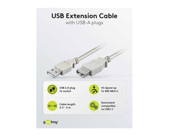 GOOBAY USB 2.0 (M) / USB 2.0 (Ž) Hi-Speed 1,8m sivi podajševalni kabel