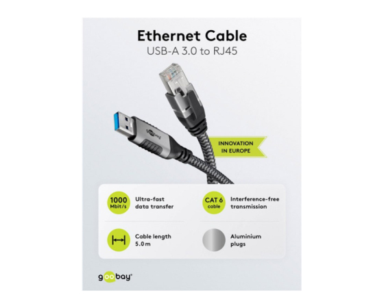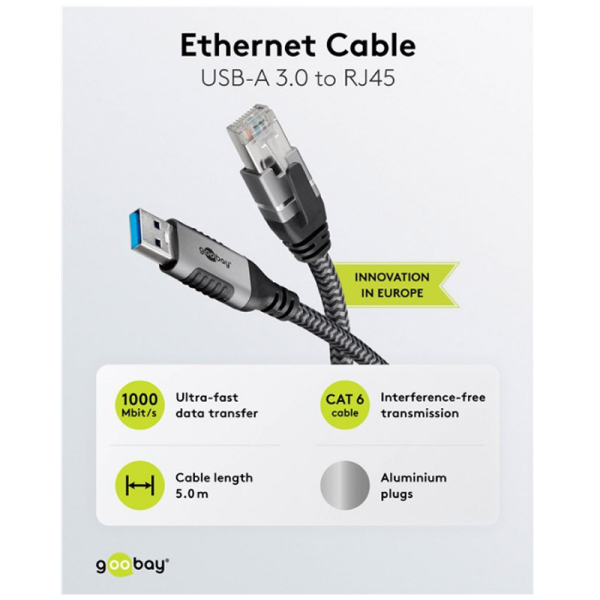Kabel LAN zagotavlja stabilno, žično internetno povezavo z napravami USB-A brez lastnih omrežnih vrat