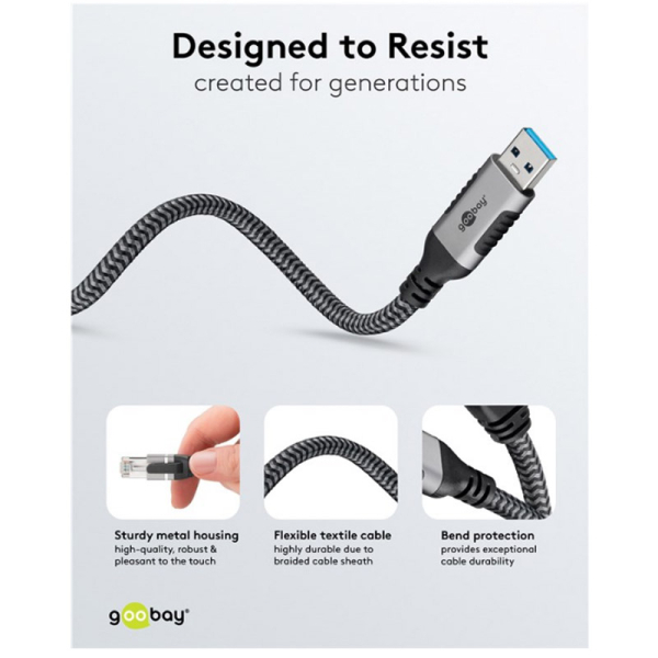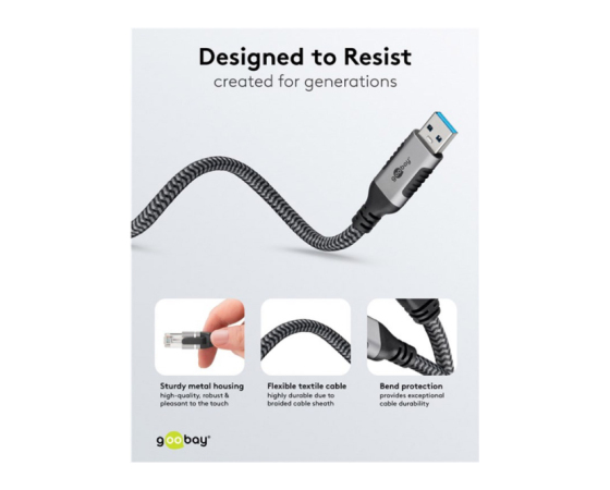 Pleten, vzdržljiv tekstilni plašč kabla USB je prijeten na otip in je nežen do občutljivih površin