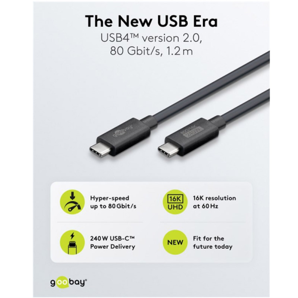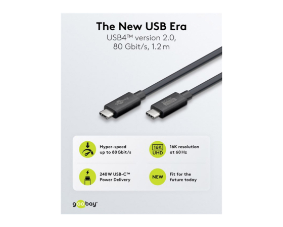 Standard prihodnosti že danes - z najhitrejšim kablom USB doslej. Z gigantskimi hitrostmi prenosa podatkov 80 Gbit/s in 240 W moči se kabel kosa celo s povsem novim Thunderbolt 5 in je prvak v sektorju iger. S kablom je že danes na voljo zmogljivost prihodnosti za visoko zmogljive prenosnike, funkcije za več monitorjev visoke ločljivosti, zmogljive grafične kartice ali matične plošče.