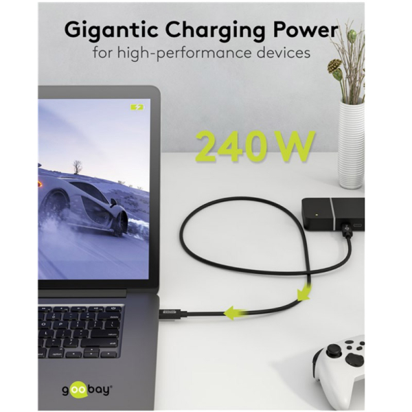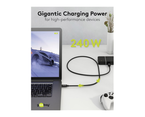 Z 240 W Power Delivery (EPR) je kabel USB močan napajalnik za visoko zmogljive prenosnike, priklopne postaje in druge energetsko intenzivne multimedijske naprave