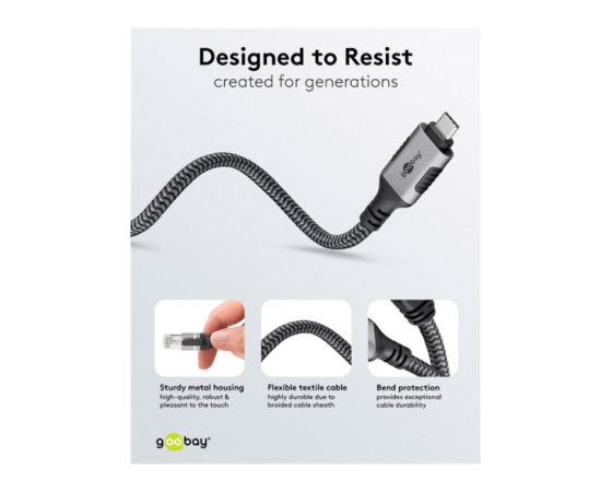 Pleten, vzdržljiv tekstilni plašč kabla USB je prijeten na otip in je nežen do občutljivih površin