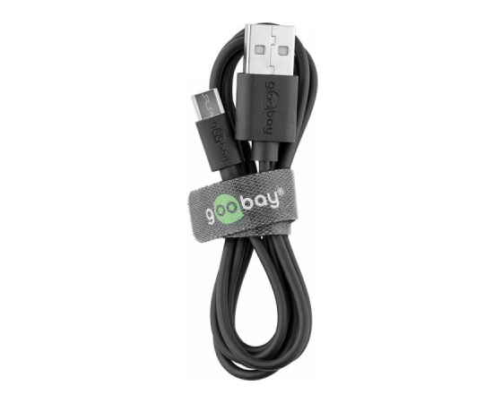 Goobay USB 2.0 type A - microUSB 2.0 type kabel črne barve. Dolžine 1m z maksimalno hitrostjo prenosa podatkov 0,48 Gbit/s.
