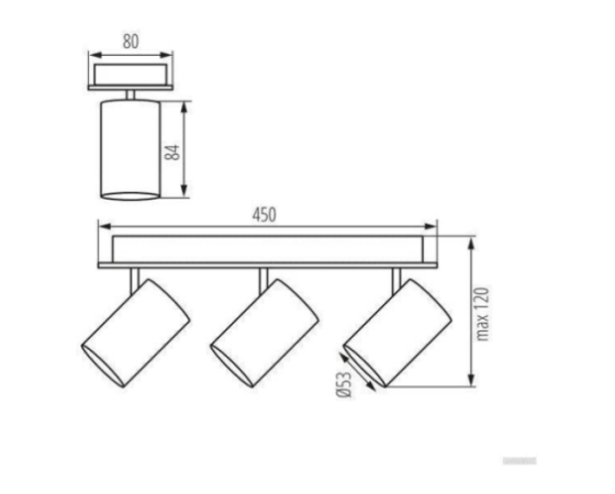 Mere svetilke (DxŠxG): 450 x 80 x 120mm