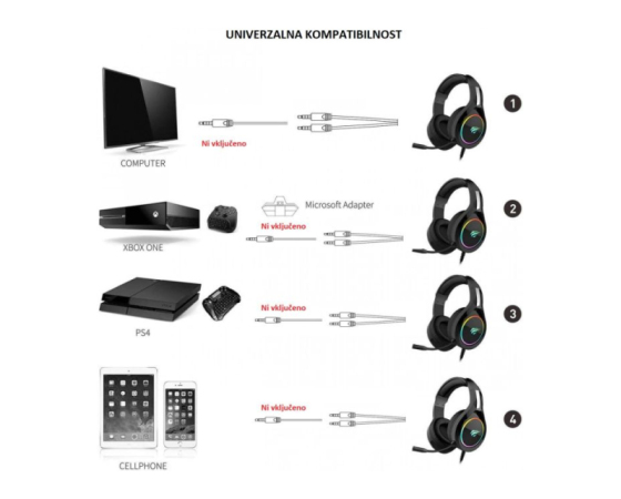 Univerzalna kompatibilnost z različnimi napravami: PS4, PS4 pro, XBOX , XBOX One, Nintendo switch, namizni računalnik, prenosnik, tablični računalnik, telefon