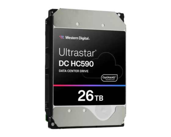 WD Ultrastar DC HC590 model WUH722626ALE6L4 0F65672 je zasnovan za visoke zmogljivosti in zanesljivost v zahtevnih podatkovnih centrih. Ponuja do 26 TB shranjevalnega prostora v standardnem 3,5‑palčnem formatu, s hitrostjo vrtenja 7200 RPM, vmesnikoma SATA 6 Gb/s in velikim predpomnilnikom 512 MB. Disk uporablja napredne tehnologije, kot so OptiNAND, HelioSeal in ArmorCache, ki povečujejo učinkovitost, vzdržljivost in zaščito pred izgubo podatkov ob izpadu napajanja. Zasnovan je za neprekinjeno delovanje 24/7, z obremenitvenim letnim faktorjem do 550 TB in MTBF vrednostjo do 2,5 milijona ur — idealen za velike podatkovne rešitve, RAID polja ali arhivske sisteme.