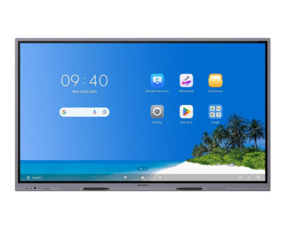 Hikvision DS-D5B65RB/EP je 65-palčni interaktivni zaslon 4K UHD, zasnovan za pouk, predstavitve in sodelovalno delo v podjetjih. Panel tipa VA ponuja visoko kontrastno razmerje, širok vidni kot in antirefleksno steklo, ki zmanjšuje bleščanje ter zagotavlja jasno sliko v različnih svetlobnih pogojih. Zaslon je primeren za vsakodnevno uporabo v učilnicah, sejnih sobah in hibridnih okoljih.