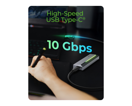 IB-1826MCL-CU31 je kompaktno in estetsko zasnovano ohišje za M.2 SATA in NVMe SSD-je, ki združuje visoko hitrost prenosa podatkov, prilagodljivost in sodoben vizualni izgled. Vgrajena RGB osvetlitev deluje kot eleganten poudarek ter hkrati prikazuje stanje napajanja, kar ohišju dodaja tako funkcionalnost kot vizualno privlačnost.