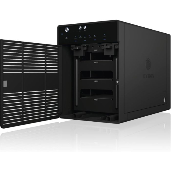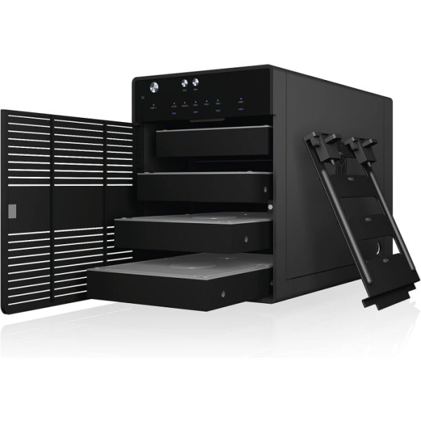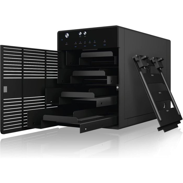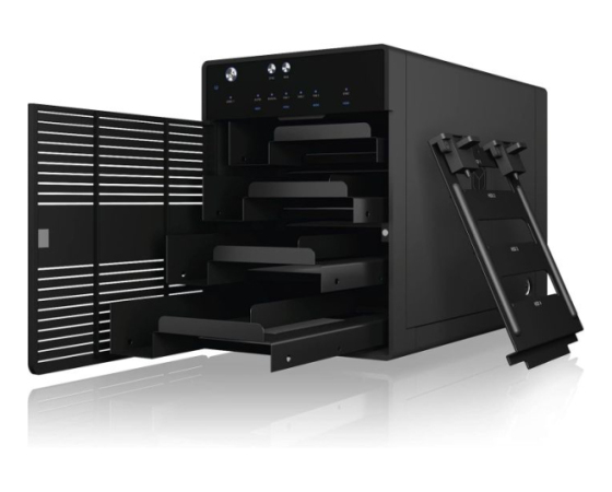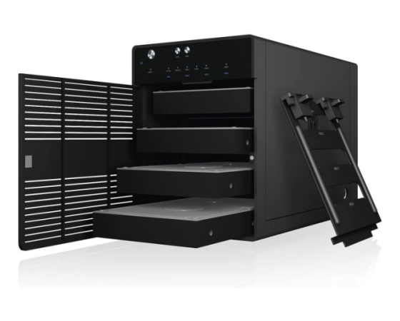 IB-3740-C31 je zmogljivo 4-režno USB-C ohišje za 2,5" in 3,5" SATA diske. Podpira posamezni način (SINGLE), kjer je vsak disk dostopen ločeno. USB 3.2 Gen 2 zagotavlja hitrosti do 10 Gbit/s, aluminijasto ohišje in temperaturno krmiljen 80 mm ventilator pa skrbita za učinkovito hlajenje. Z odstranljivimi pladnji je menjava diskov enostavna, LED indikatorji pa prikazujejo stanje delovanja in napake.