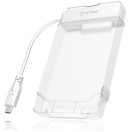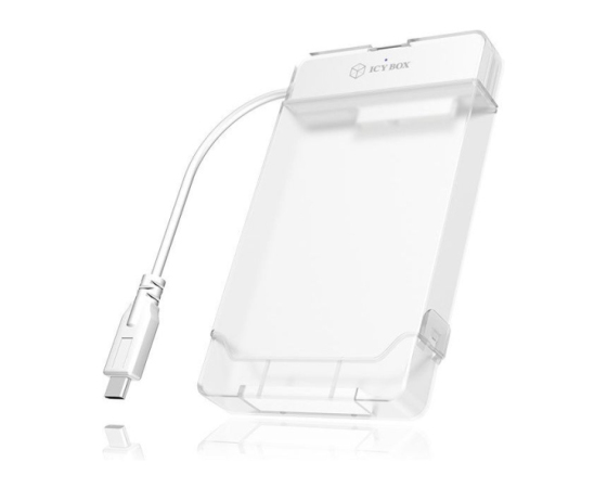Ohišje IB‑AC703‑C združuje funkcijo adapterja in zaščitne škatle v eni napravi. Disk vstavite v adapter, ga prek USB‑C priključite na računalnik ali prenosnik, ali pa ga shranite v priložen plastični zaščitni ovoj, ki ščiti disk pred udarci in prahom. Prenosi potekajo z USB 3.0 hitrostjo do 5 Gb/s, podprt je protokol UASP, kar pomeni boljša učinkovitost pri SSD-jih. Ohišje je plug‑and‑play in podpira Hot‑Swap, brez dodatnih gonilnikov, združljivo z Windows in macOS sistemi. Barva je prosojno bela, ohišje je lahkotno in primerno za uporabo doma, na poti ali v pisarni.