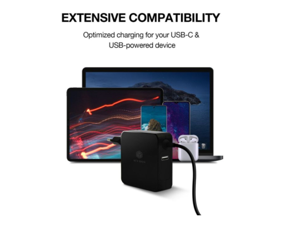 IB-PS101-PD je zmogljiv USB-C PD polnilnik z močjo do 90 W in dodatnim USB-A priključkom za hkratno polnjenje dveh naprav. Podpira PD 3.0 in zagotavlja hitro polnjenje prenosnikov, tablic in telefonov. Integriran 1,8 m USB-C kabel omogoča stabilen prenos moči, inteligentni čip pa zagotavlja zaščito pred pregrevanjem, prenapetostjo in kratkim stikom. Kompaktna zasnova je idealna za doma ali na poti.