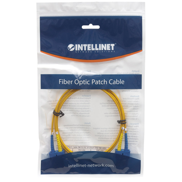 Premeri: - Jedro: 9 ?m - Obloga: 125 ?m Vrsta vlakna: singlemode Konektorji: SC na SC Duplex Material obloge: LSZH Obloga OD: 3,0 mm Barva obloge: rumena Material obroča: keramika Poliranje: UPC Temperaturno območje delovanja: -40°C do +75°C Radij upogibanja: 30 mm Povratna izguba: ?55dB Vstavljena izguba: ? 0,25 dB