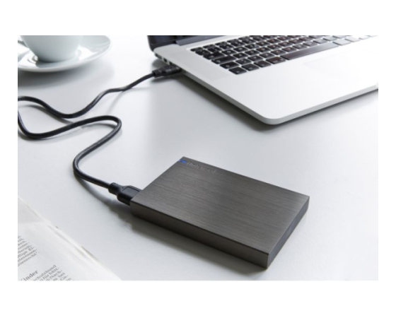 Zunanji disk z aluminijastim ohišjem v barvi antracit ponuja veliko prostora na disku in s svojimi vrati USB 3.0 zagotavlja najvišje hitrosti prenosa podatkov.