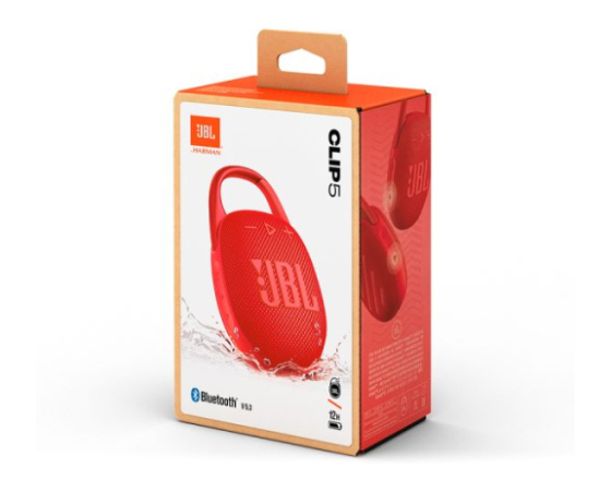 JBL Clip 5 vključuje reciklirano plastiko in tkanino za zaščitno mrežo zvočnika. Embalaža je izdelana iz papirja s certifikatom FSC in natisnjena s sojinim črnilom.