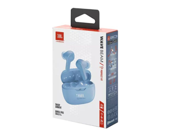JBL Wave Beam, odporen proti vodi in prahu, je zasnovan za vsakodnevno zabavo z basom. Do 32 ur delovanja baterije in varna, udobna zasnova. Ne glede na to, ali se potepate po mestnih ulicah ali sproščate na plaži, bodo vaši prostoročni stereo klici vedno kristalno čisti, medtem ko tehnologija Smart Ambient skrbi za vašo okolico. In ko potrebujete dodatno spodbudo, lahko hitro napolnite dve dodatni uri energije v samo 10 minutah.