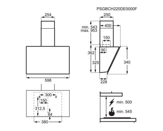 Kaminska kuhinjska napa Electrolux LFV436K, črna, 60 cm