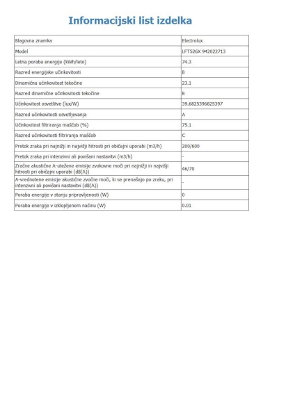 Kuhinjska napa Electrolux LFT526X, 60 cm