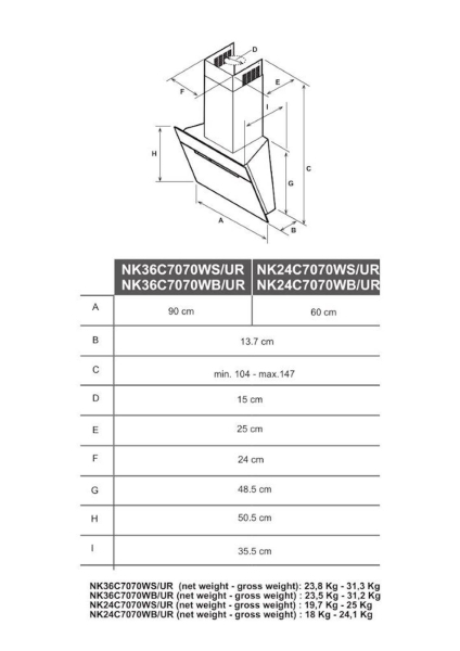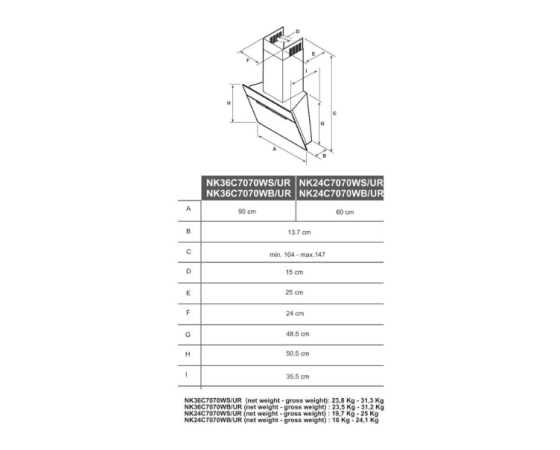 Kuhinjska napa Samsung NK24C7070WB/UR, črna, 60 cm